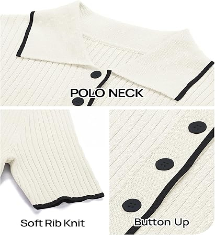 Feature: V neck, lapel neck, short sleeve, button-front, contrasting color details on the neckline and cuffs for a romantic style, fitted bodice and pleated fishtail skirt for a custom fit, ankle length, womens summer sweater dress, dresses for women 2024 casual