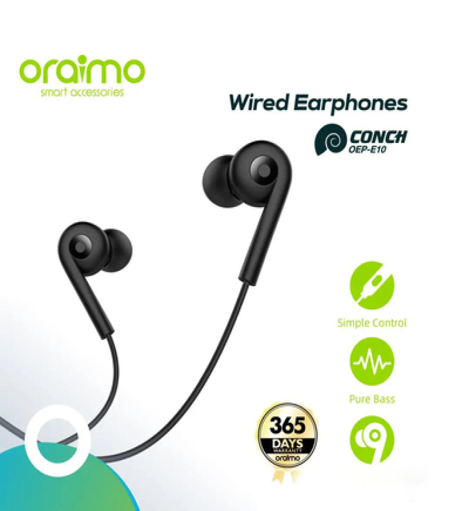 Built to last, the Oraimo Conch OEP-E10 features a durable construction with high-quality materials that can withstand daily use. The tangle-free cable ensures that your earphones are always ready to use without the hassle of untangling knots. Whether you're commuting, working out, or simply relaxing, these earphones provide the perfect audio companion.